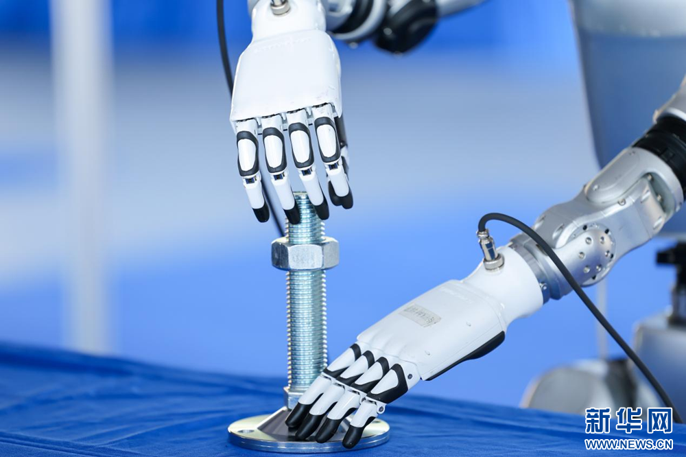 机器人双手协作完成螺栓装配操作。新华网发(大赛组委会供图)