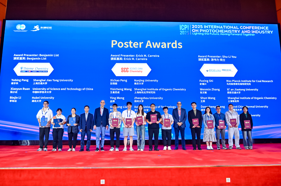 本次大会墙报展示环节涌现出大批创新性、前瞻性成果。经专家委员会评审,25项成果脱颖而出,获评“优秀墙报奖”。获奖者来自上海交通大学、中国科学技术大学、南京大学、华中师范大学、马克斯普朗克煤炭研究所等中外高校及科研机构,本杰明·李斯特教授等嘉宾为获奖者颁奖。