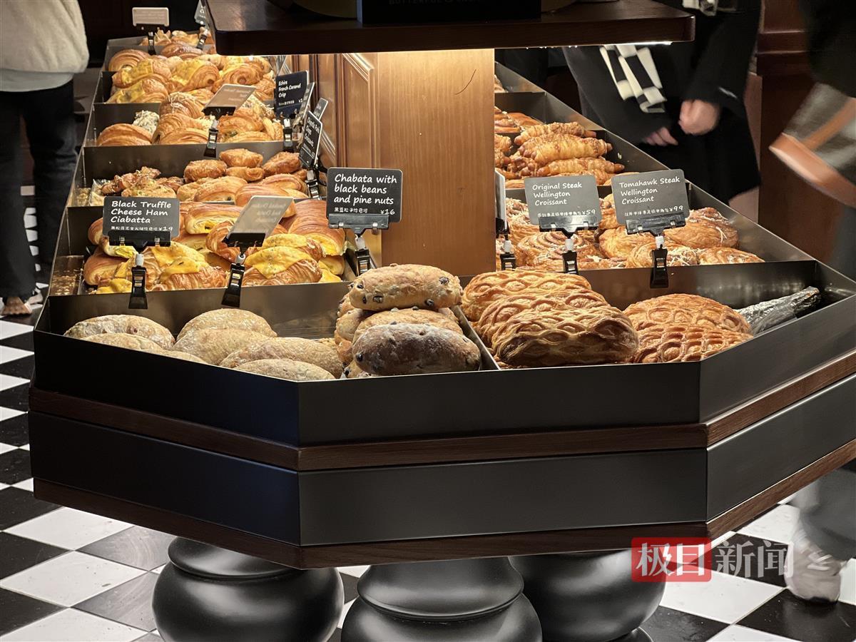 以在武汉天地内开店的网红品牌“黄油与面包”为例,店内开心果百巧肉桂卷售价24元/个,法式黑松露芝士牛角包18元/个,店内主打的原创惠灵顿牛排牛角包售价则接近60元。