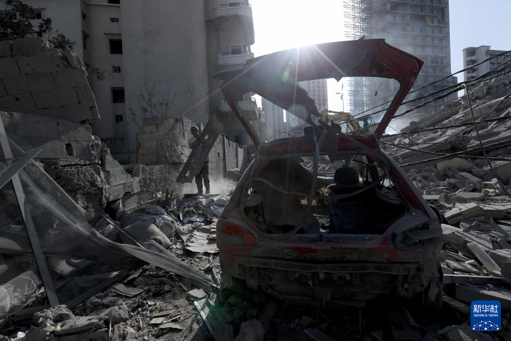这是3月18日在黎巴嫩首都贝鲁特拍摄的在以色列空袭中损毁的建筑和车辆。新华社发(比拉尔·贾维希摄)