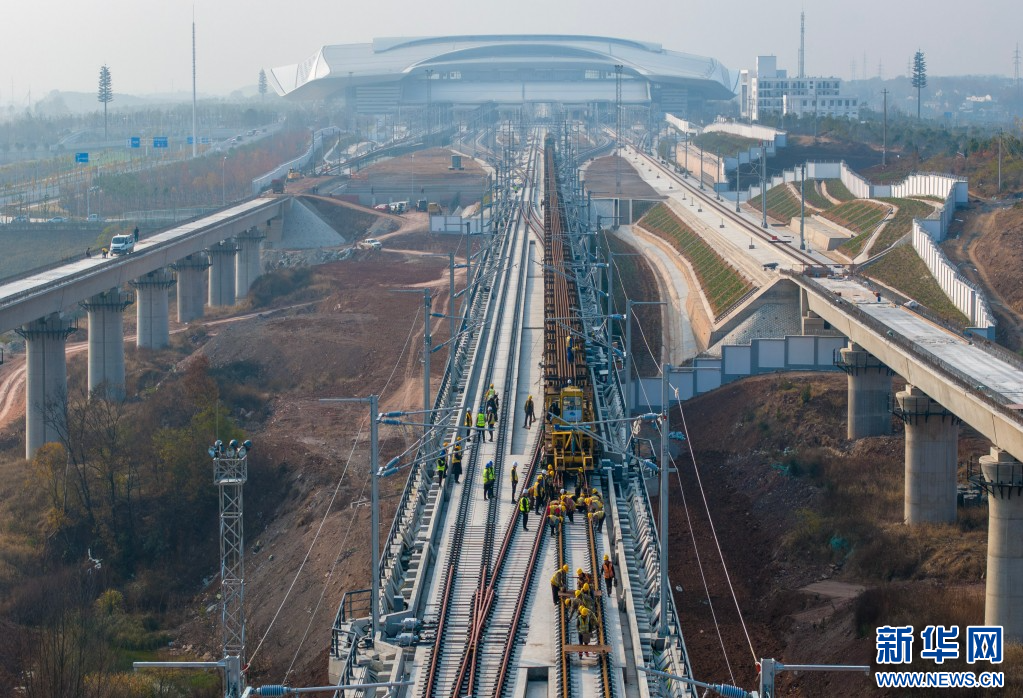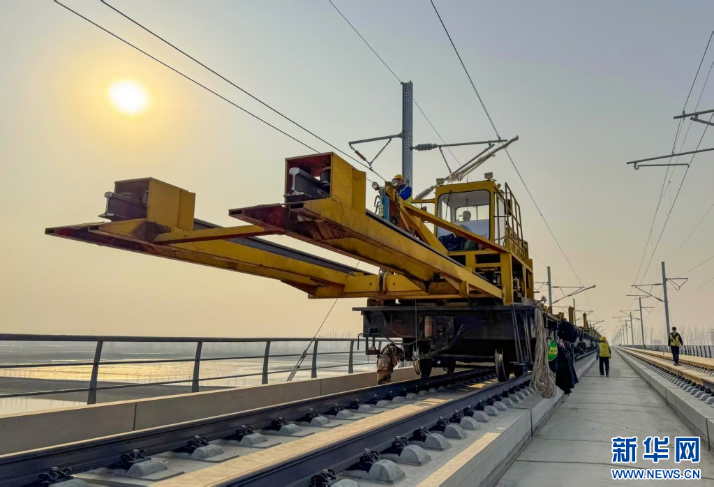 图为轨道铺设现场。新华网发