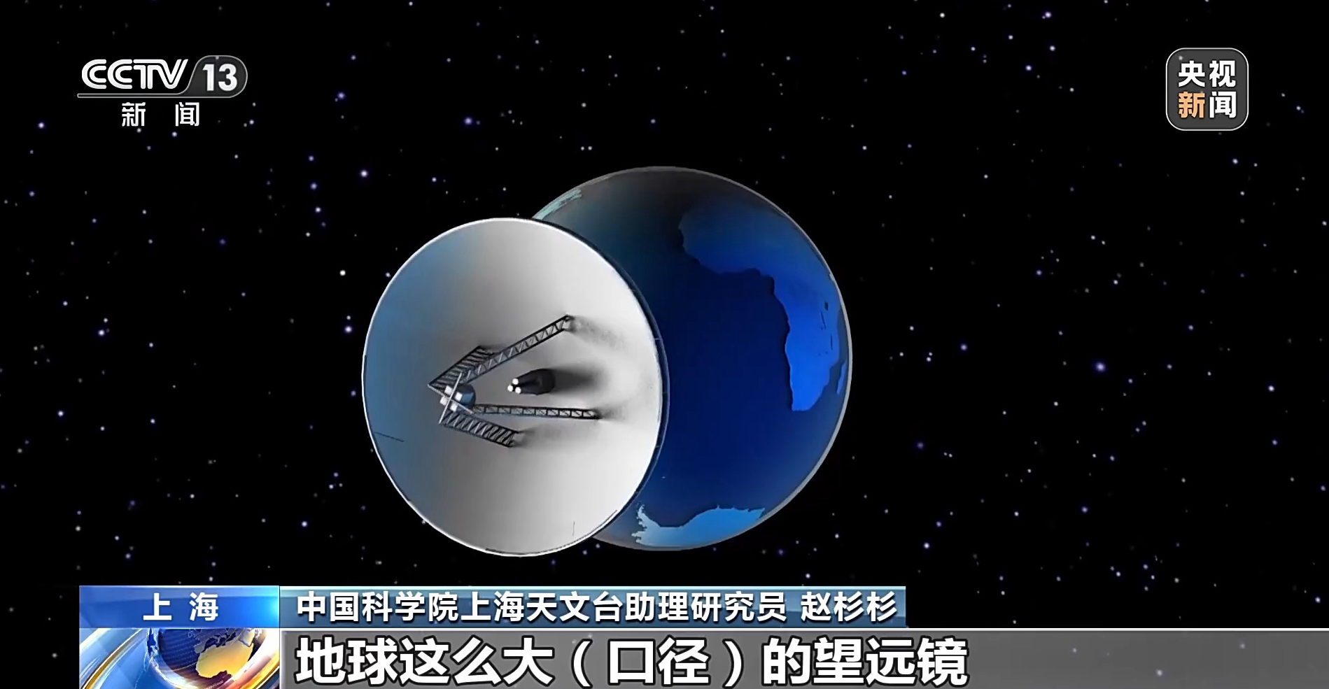 中国科学院上海天文台助理研究员 赵杉杉:有人算过,如果想看到像银河系中心超大质量黑洞这样的黑洞的话,就需要一个地球这么大口径的望远镜才能够看到。其实我们是做不出一个地球一样大的望远镜的,但是我们采用甚长基线干涉测量技术(VLBI),采用这个技术,位于全球不同位置的射电望远镜就可以组成一张网。它们同时都去看黑洞的话,就可以等效于一个口径有地球这么大的一个射电望远镜对着这个黑洞,那它的观测能力、它的空间分辨率就足够可以看到这个黑洞。
