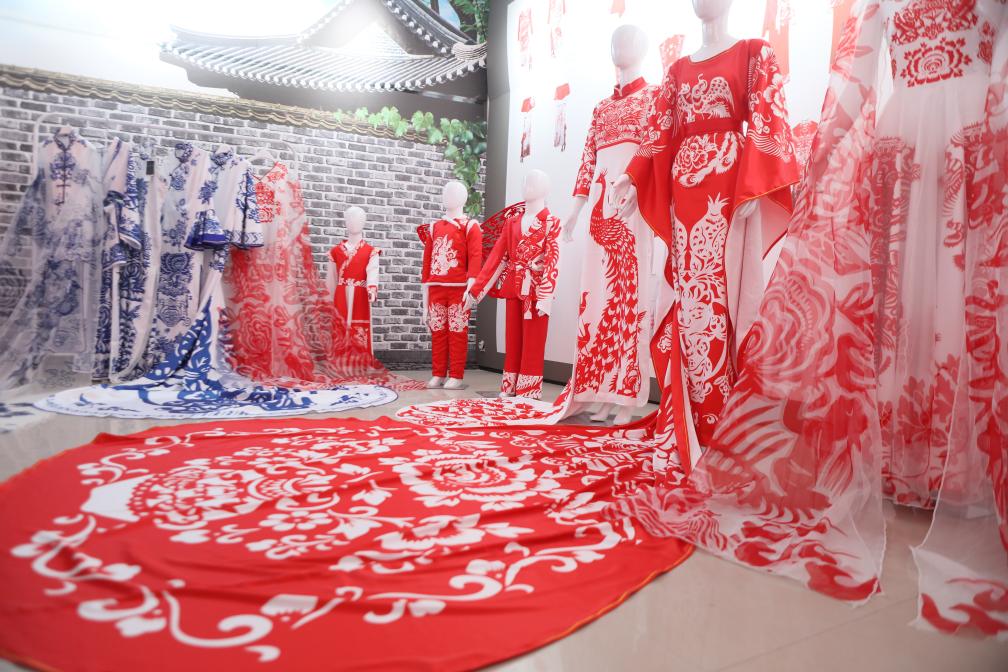 纸上纹样到身上华服,背后是一套精细繁复的制作工序:剪刻、附衬、熨烫、缝制……经过反复打磨,既保留庆阳剪纸经典纹样的美学特征,又结合现代审美流行趋势的剪纸服饰,在这里诞生。