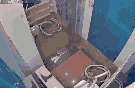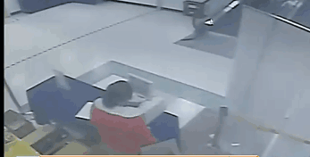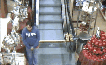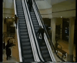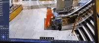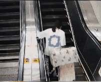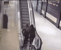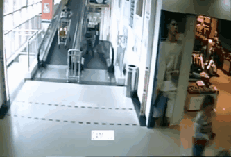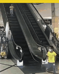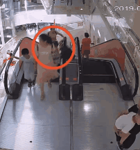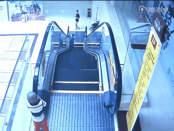 违规将轮椅推上自动人行道,轮椅从高处冲下。