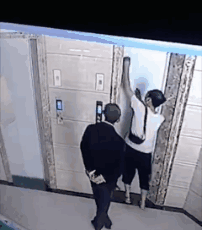 暴力踢踹电梯厅门,坠落至电梯井道。