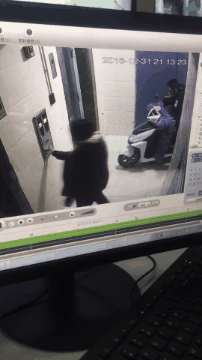 电动自行车撞击电梯厅门,骑车人坠落至井道。