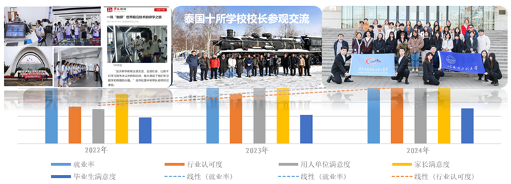 为中国中铁等企业培养一流高素质技术技能人才2700余人,就业率稳定在98%,专业对口率达88%,行业认可度、企业满意度、家长满意度、毕业生满意度连年增长。“盾构维修现场工程师”项目获评黑龙江省第一批现场工程师专项培训计划并推荐至教育部。学院获批装备制造业紧缺人才培养培训基地,为高技能人才培养改革提供了“哈铁模式”。“推进盾构专业服务特色产业、创新人才培养模式”等7个案例入选全国高职高专校联会优秀案例。
