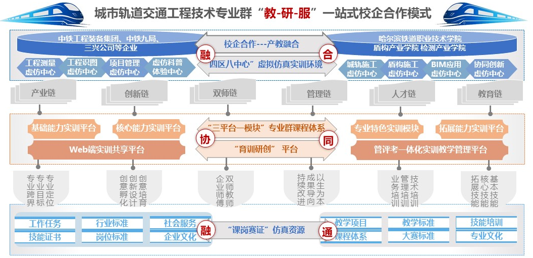 哈尔滨铁道职业技术学院聚焦轨道交通产业集群发展需求,为破解职业教育与产业发展协同不足的问题,自2019年起,联合中铁工程装备集团、盾构及掘进技术国家重点实验室等头部企业与科研机构,构建“教-研-服”一站式校企合作模式。通过数字化赋能、平台共建与协同育人,让职业教育与产业升级深度融合,为高素质技术技能人才培养与行业数字化转型注入强劲动能,历经多年实践,形成了职业教育与产业融合发展范例。