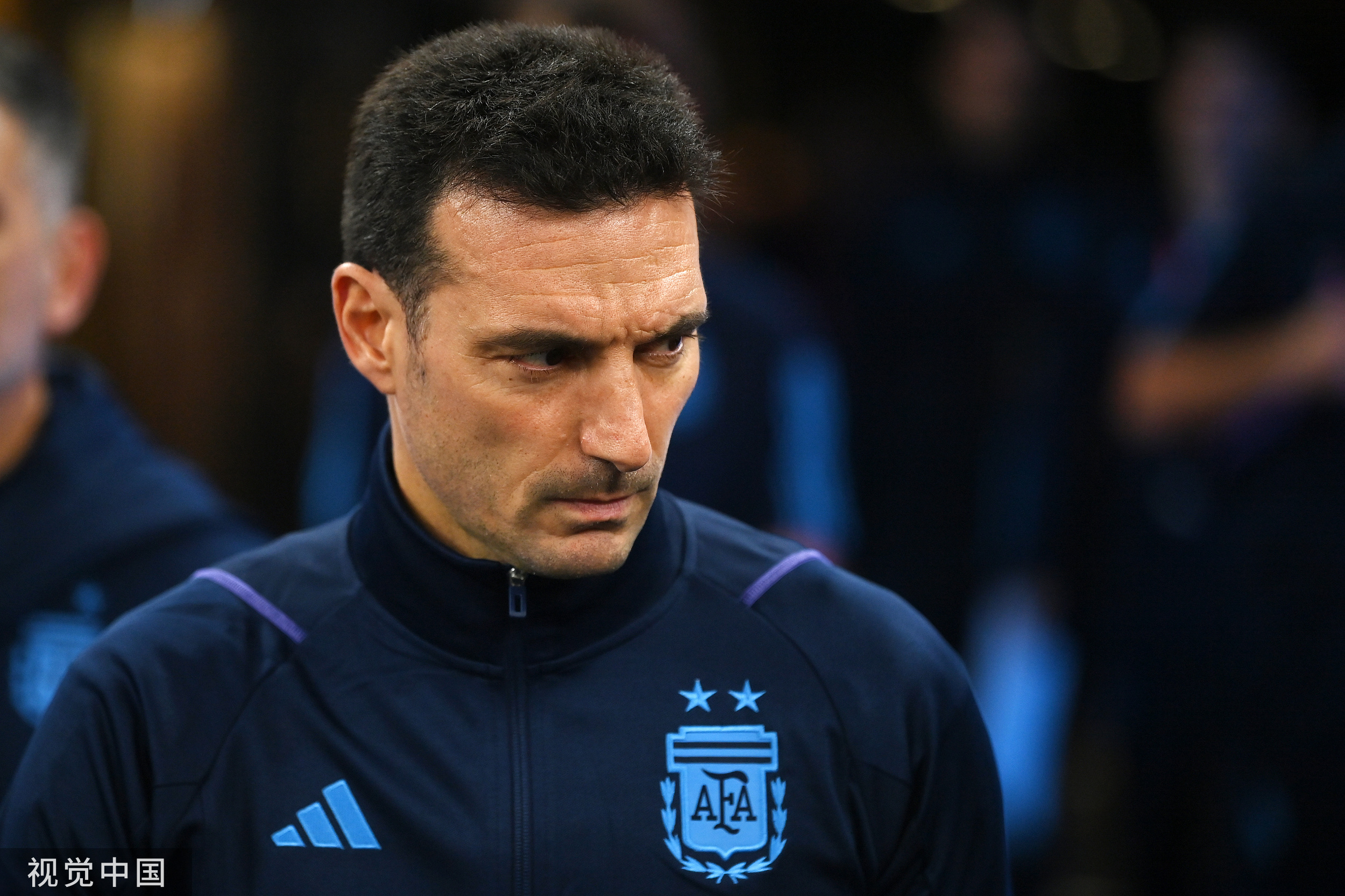 阿根廷队赛前展现出众志成城的决心,主帅斯卡洛尼表情坚毅。