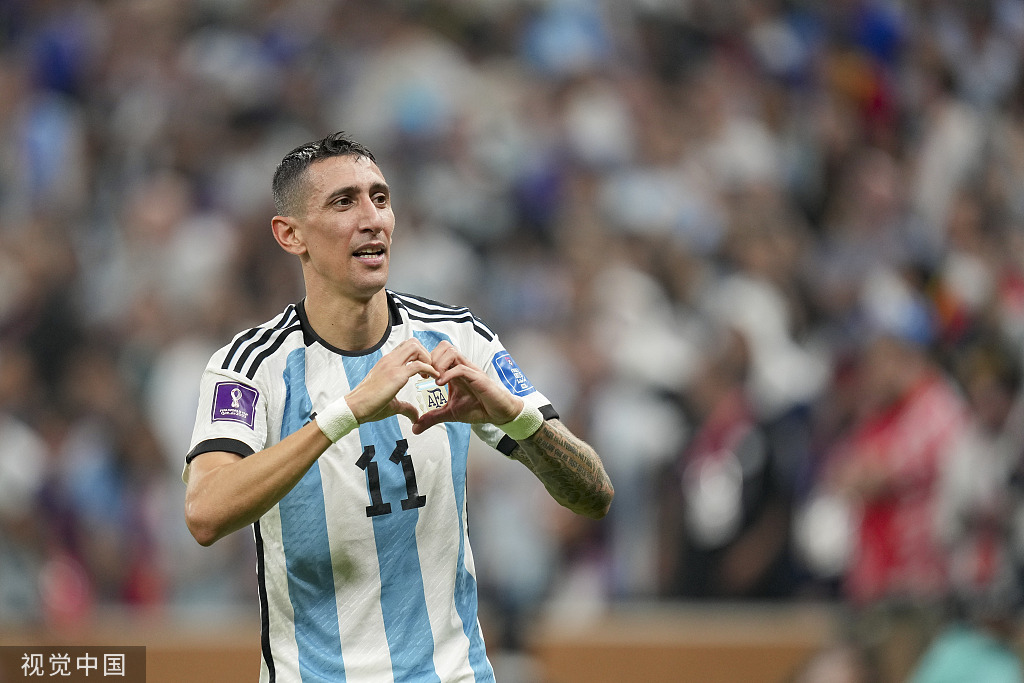面对卫冕冠军法国队,重回首发的迪马利亚在上半场造点,梅西一蹴而就。随后迪马利亚又打入一球,弥补了8年前的遗憾,阿根廷一度2-0领先。