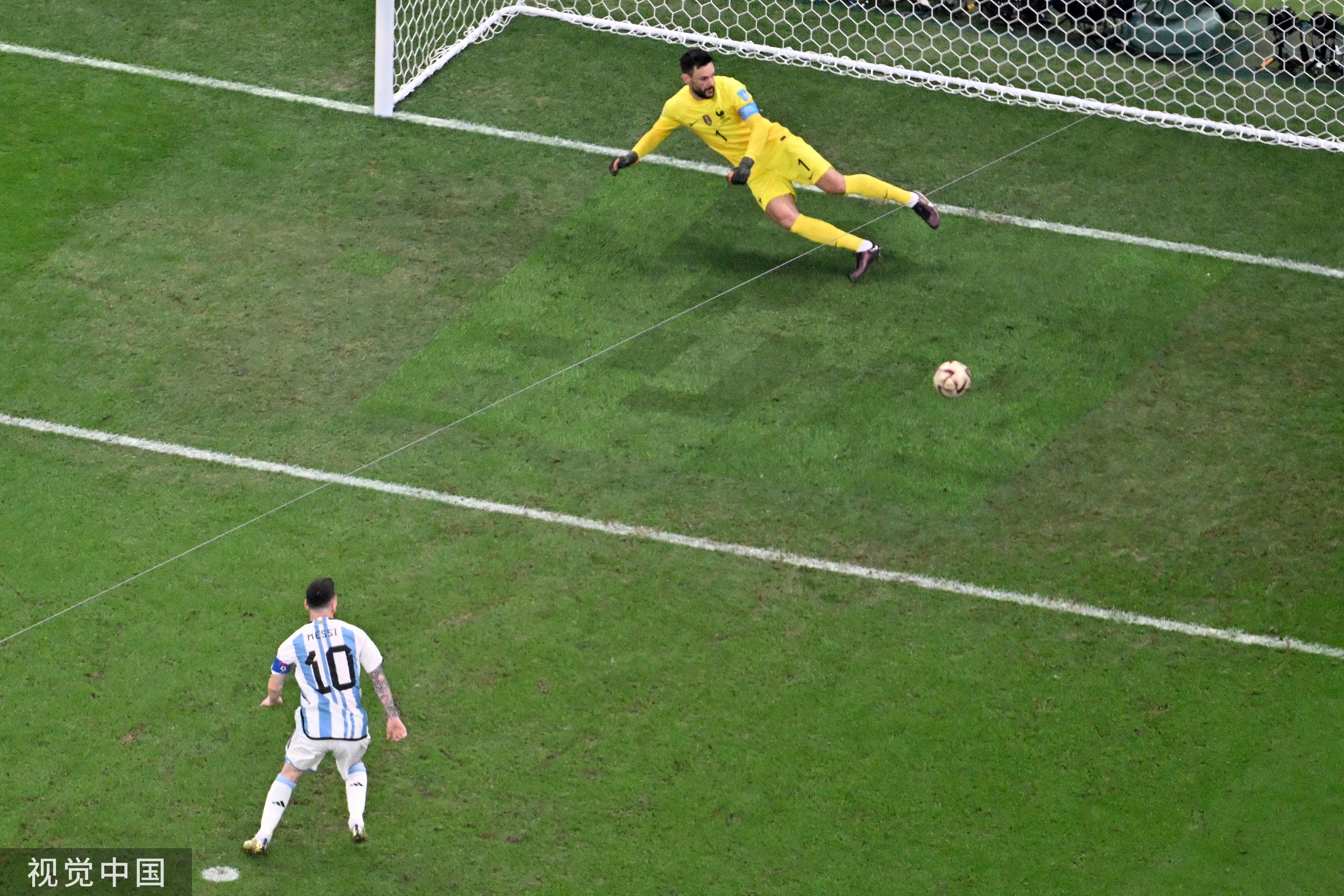 果然,第21分钟迪马利亚突破,被登贝莱在禁区内撞倒,裁判处以点球极刑——梅西射向球门右下角,洛里判断错了方向,阿根廷1比0。