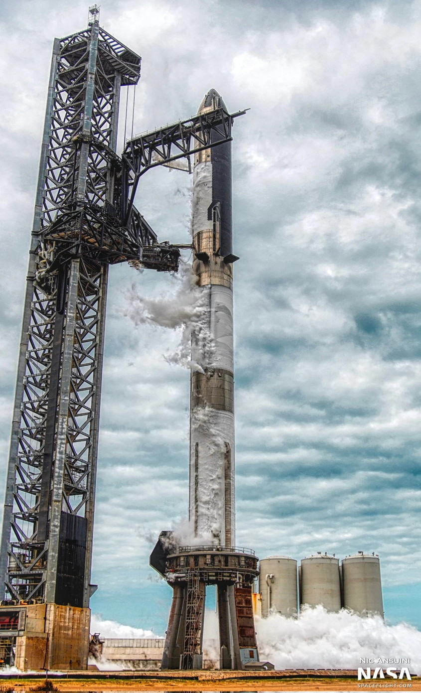 测试中的星舰,图中的塔架高度相当于60层高的楼。图片来源:spaceflight