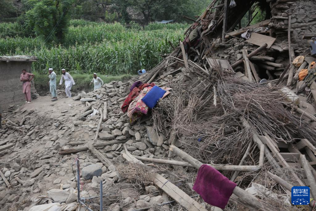 9月1日,在阿富汗库纳尔省努尔加尔的马扎里峡谷,当地居民查看震后的废墟。新华社发(塞夫拉赫曼·萨菲摄)