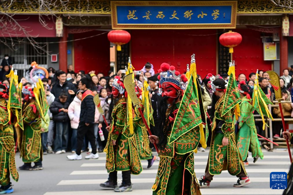 3月3日,农历正月十五,陕西省宝鸡市陇县“社火闹春·狂欢陇州”元宵社火游演火热上演。来自全县10个镇的49支社火队伍沿城区主干道前行,马社火、步社火、高芯社火等20余种社火轮番登场。