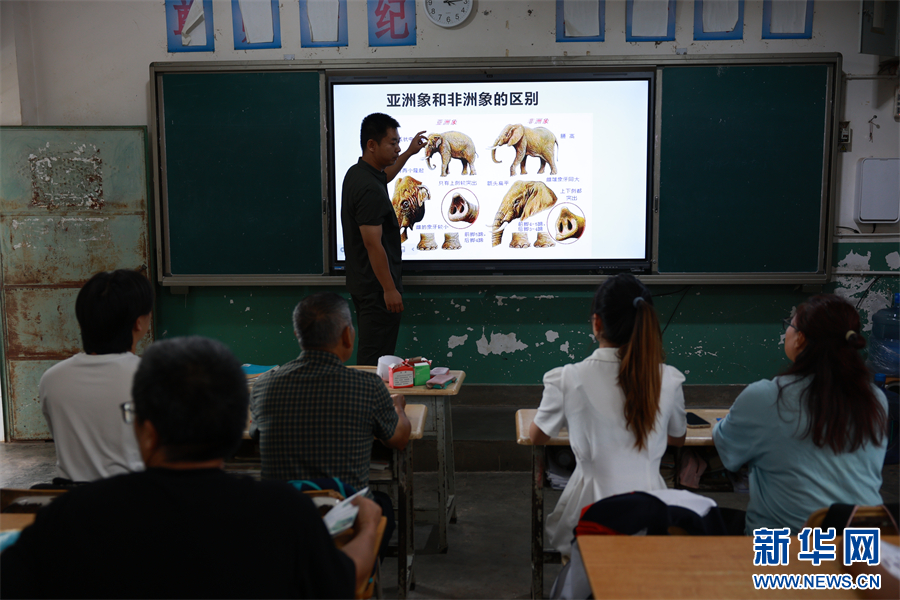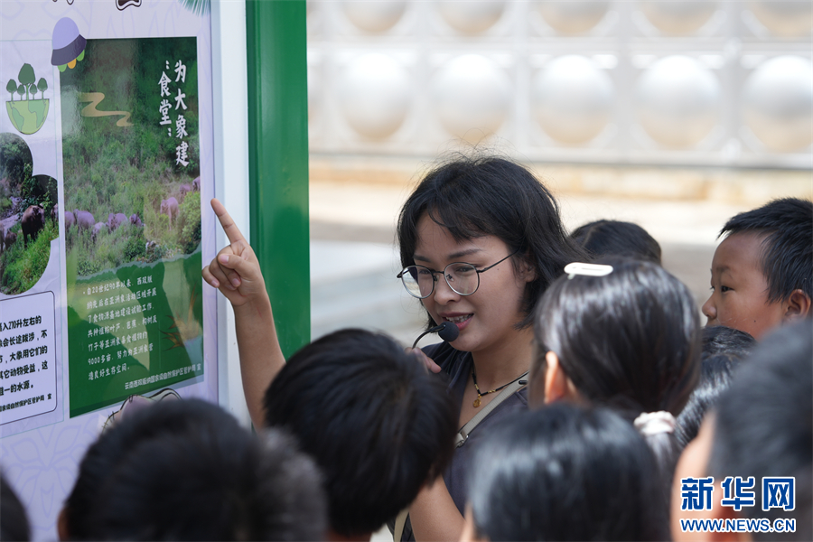 普丽香正在给学生们科普亚洲象相关知识(6月25日摄)。新华网发