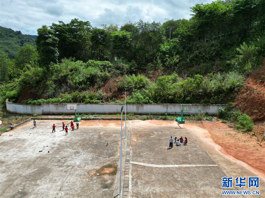 航拍关坪小学防象墙(6月26日摄)。新华网发