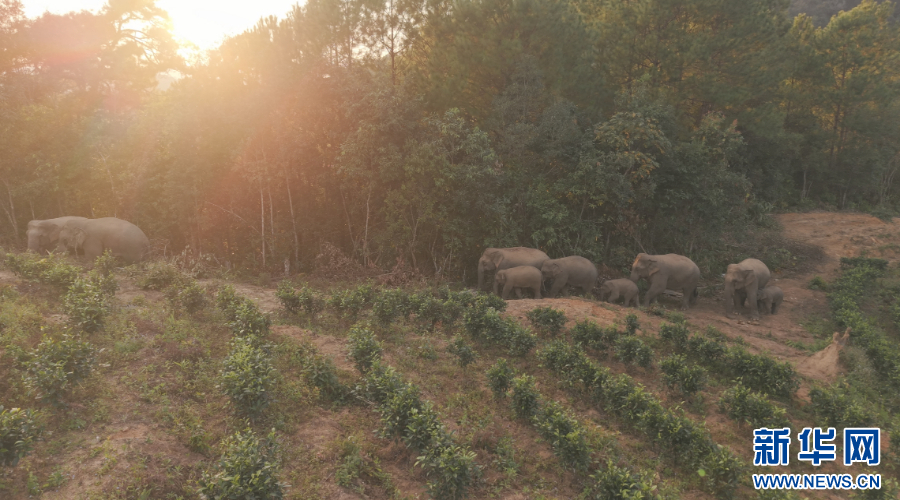 北上南归途中的象群(资料图)。新华网发(云南省森林消防总队 供图)