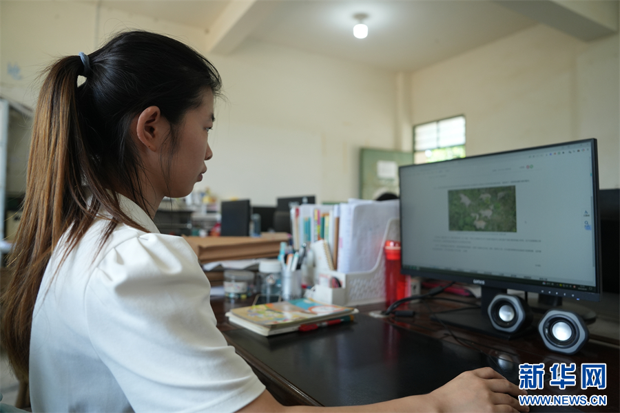丁雪正在查询亚洲象相关资料(6月26日摄)。新华网发