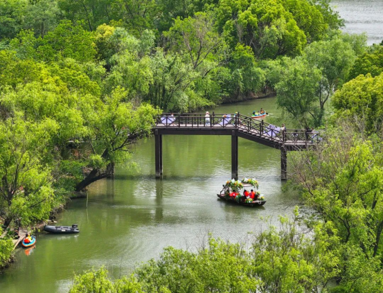 5月4日,游客在浙江省湖州市长兴县的太湖图影湿地公园游览。视觉中国 供图