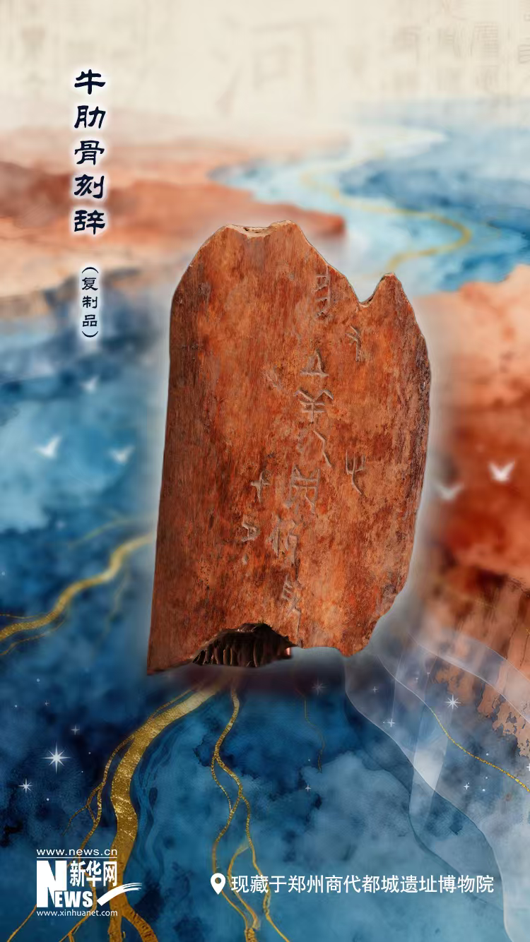 (牛肋骨刻辞(复制品) 现藏于郑州商代都城遗址博物院)
