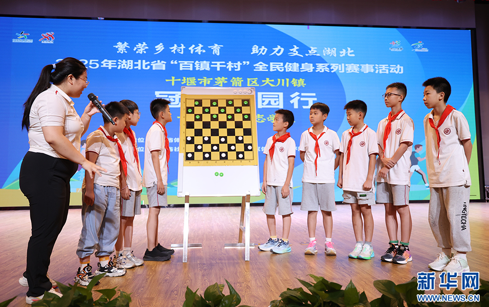 图为管逸飏向同学们普及国际跳棋知识,新华网发