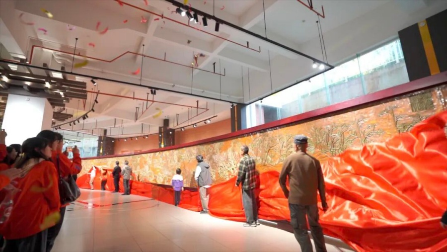 32米斑铜版《清明上河图》在云南经济管理学院揭幕