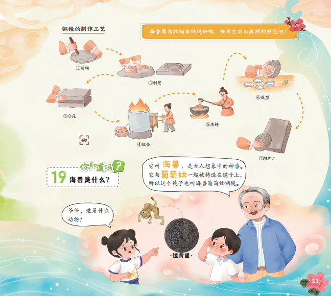 为了更全面地介绍江苏历史上各个时期的工艺技艺,读本在7个相对独立的单元中介绍了7件不同年代、不同品类的文物。新石器时代玉琮上的纹饰是用什么工具雕刻的?什么是错金银?琉璃瓦的颜色是怎么来的?读本通过活泼的卡通形象和游戏化机制,将认知学习、兴趣引导与操作实践无缝衔接,增强参与感与记忆点。