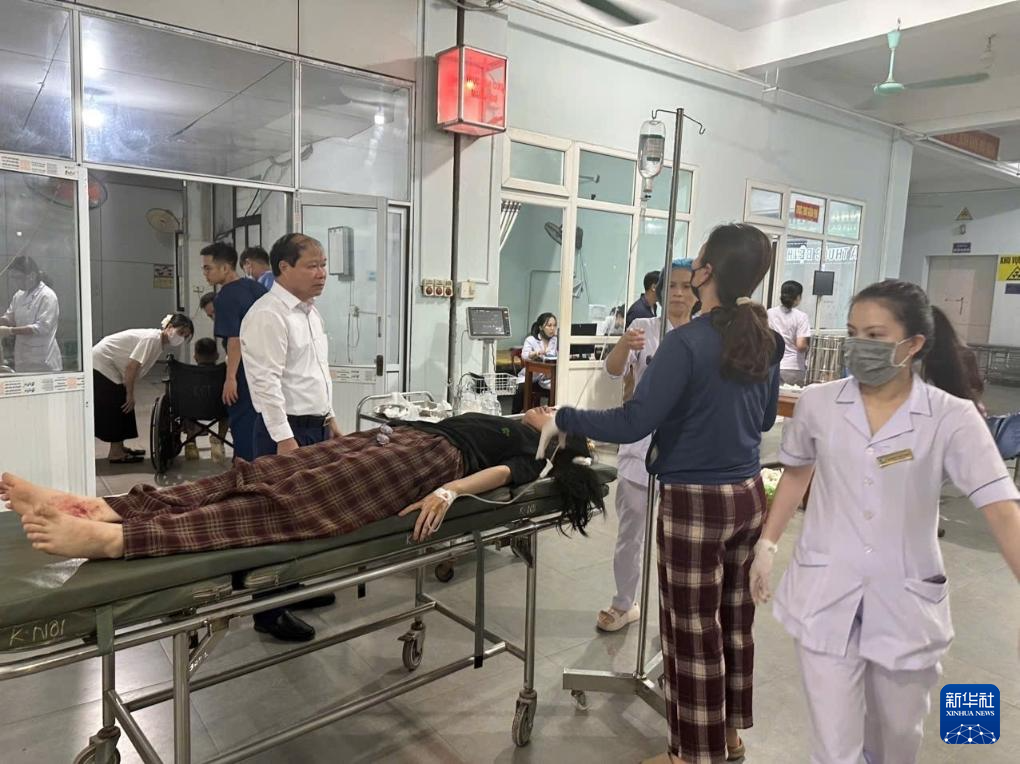 7月25日,在越南中部河静省,交通事故中的伤员被送往医院接受救治。新华社/越通社