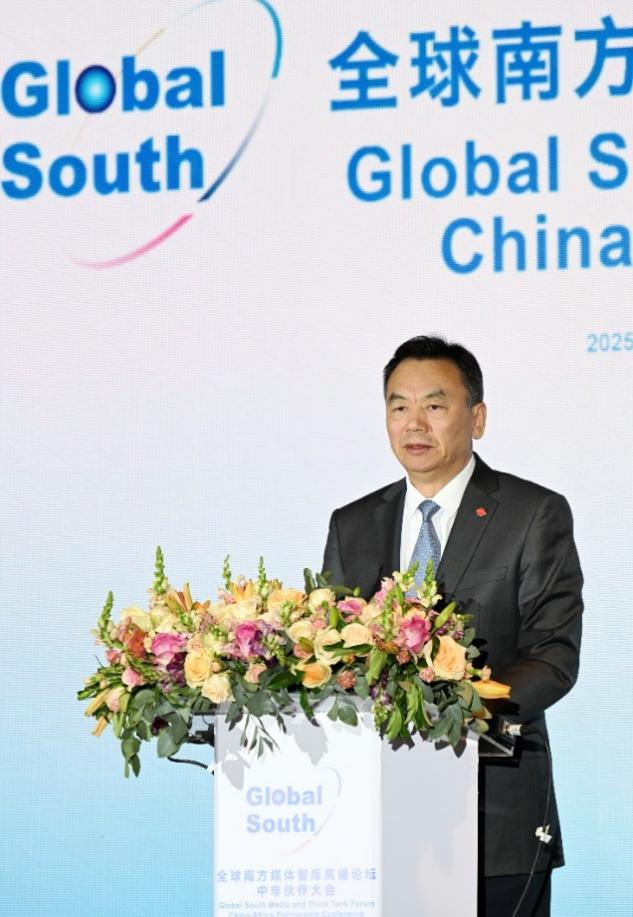 11月13日,中国国家能源集团董事徐新福在“全球南方”媒体智库高端论坛中非伙伴大会开幕式上致辞。杨磊 摄