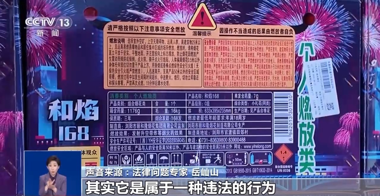 声音来源 法律问题专家 岳屾山:国家对于烟花爆竹其实是实行非常严格的许可证制度,它的核心原则就是线下是要定点进行经营。即使是已经取得了烟花爆竹经营的,不管是批发还是零售许可证,合法的销售活动也是必须严格限定在许可证上面所载明的固定的零售的经营场所内来进行。通过这种社交平台兜售,并且承诺邮寄或者是送货上门,其实它是属于一种违法的行为。