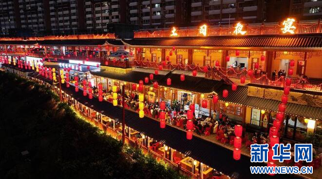 图为鹤峰县风情街长桌宴。新华网发 徐诚良 摄