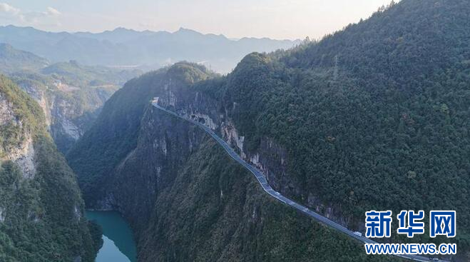 图为鹤峰县挂壁公路——雕崖。新华网发 徐诚良 摄