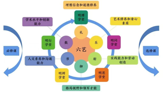 五育并举筑根基,追求卓越攀高峰。近年来,明德书院深入推进“一站式”学生社区建设,精心设计了学生思想政治工作品牌和综合素质拓展载体,已建成1300余平方米的新型学生共享社区,结合时代特点,凝练“礼、乐、射、御、书、数”六艺新内涵,创建了“六艺五学堂”人才培养体系,通过明博、明问、明思、明辨和明行学堂开设六艺课程。“大学之道,在明明德,在亲民,在止于至善”。明德书院通过抓思想树立远大志向,通过抓载体提升综合素质,通过抓服务促进全面发展,书院学子在“挑战杯”全国大学生课外学术科技作品竞赛、国际“互联网+”大学生创新创业大赛、全国大学生足球、田径、武术、乒乓球等体育赛事及原创红色舞蹈大赛中均获得优异成绩,书院“三全育人”工作体系持续走深、走实。