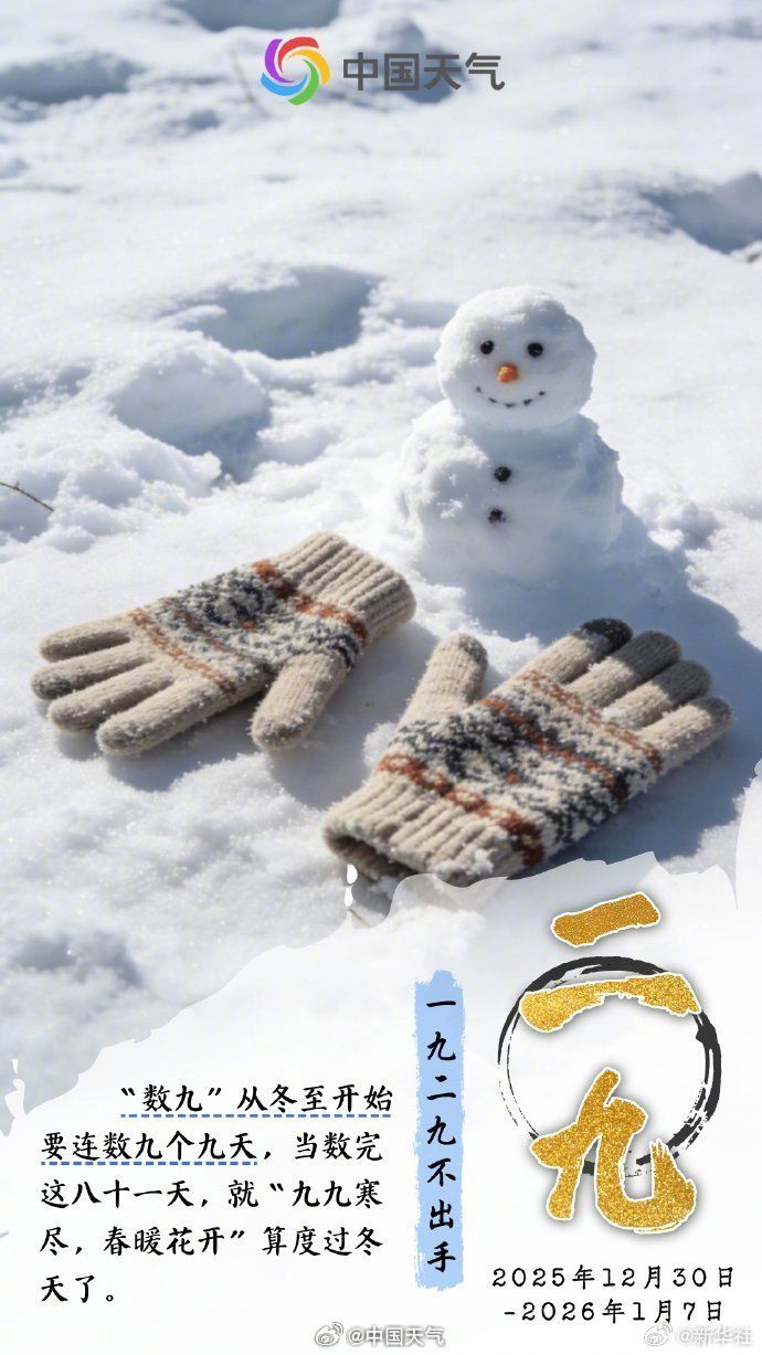 今天我们正式进入“三九”。据中国天气,1991年至2020年的数九期间,一九二九的气温仍在持续下滑,三九四九时气温跌至低谷。其中三九最冷,全国平均气温为-5.14℃。你知道究竟什么是“数九”吗?在每个“九”期间又要注意什么?