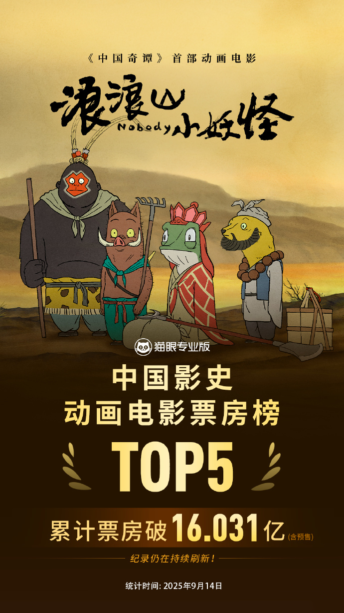 超16亿!《浪浪山小妖怪》进入中国影史动画电影票房榜前五