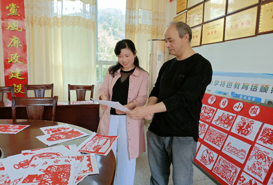 第十四届全国人大代表、湖南省邵阳市绥宁县河口苗族乡杨家寨村村民胡美娥(左一)在当地小学调研。