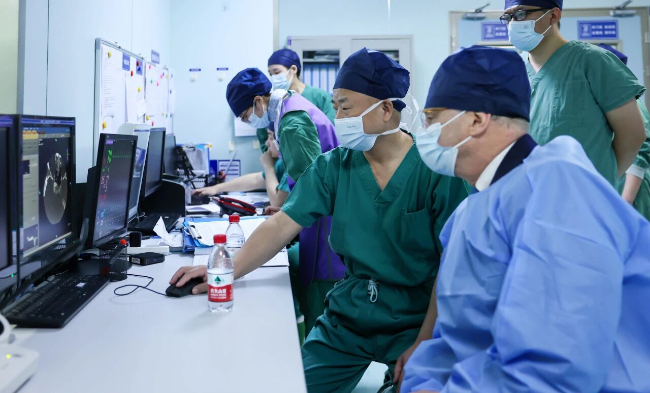 在脑血管病科,Fernando Goldenberg与该院学术副院长兼脑血管病科主任席刚明、脑血管病一科副主任王贵平团队围绕一例发病超过12小时的复杂急性脑梗死取栓病例进行交流。Fernando Goldenberg表示,在超时间窗和复杂病变条件下,手术团队展现了出色的技术能力和快速的决断能力。