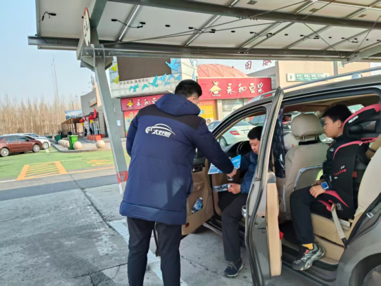 在河北唐山,服务更加具象化。春节假日返程期间,中国太保产险河北分公司在警保联动服务点,为过往车辆提供免费检测服务。工作人员俯身排查轮胎、仔细检测电瓶,用专业技术为车辆“体检”,排除潜在的安全隐患,同时主动解答保险咨询、指引理赔流程,用热情的服务缓解司乘人员的旅途疲惫。