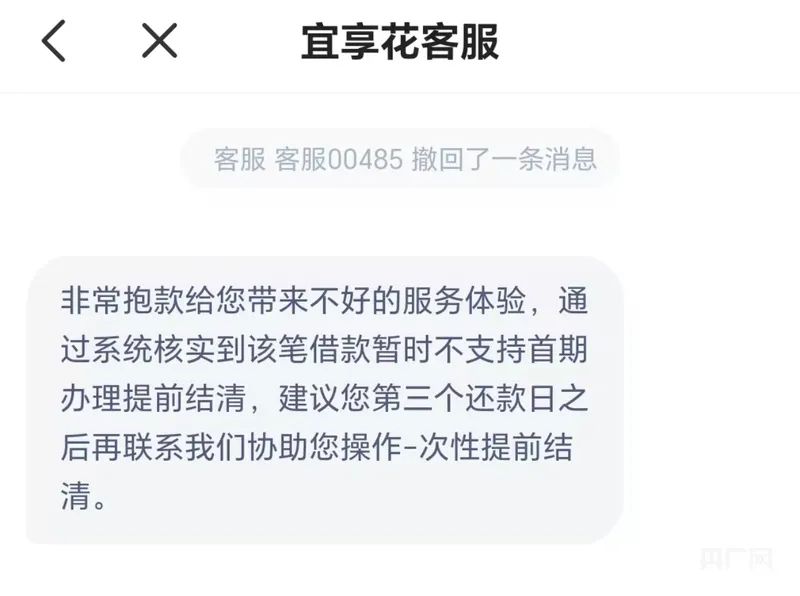 客服表示不支持首期办理提前结清手续(央广网发 受访者供图)