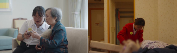 卫正霞(左)、王悦(右)在照护认知症长辈