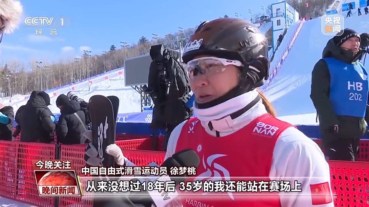 中国自由式滑雪运动员 徐梦桃:我昨天还写了个日记,18年前第一次参加亚冬会时我还是小朋友,没想到18年后35岁的我还能出现在赛场上。