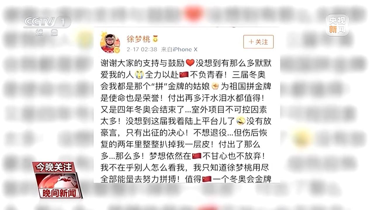 经过手术后艰难的康复,徐梦桃如期站在了2018年平昌冬奥会的赛场上,但最终只获得了第九名。赛后,徐梦桃这样写道:为祖国拼金牌是使命也是荣誉,付出再多汗水泪水都值得,梦想依然在,不甘心也不放弃。