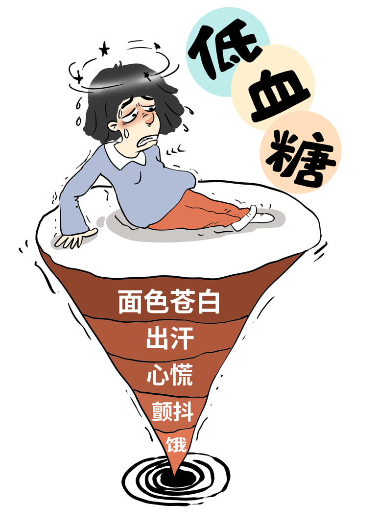 低血糖又称为低血糖症,但这不是一种独立的疾病,而是多种原因引起的血葡萄糖浓度过低综合征。低血糖临床表现复杂,可分为神经性症状和脑功能紊乱性症状两类。典型的低血糖表现为面色苍白、头晕、心悸、手抖、出汗、乏力等神经症状,根据血糖下降的程度会出现认知、意识障碍甚至昏迷等脑功能损害,严重持久的低血糖可导致永久性脑功能障碍或死亡。对于轻中度低血糖,及时进食或补充葡萄糖,待血糖浓度上升后症状就可缓解。