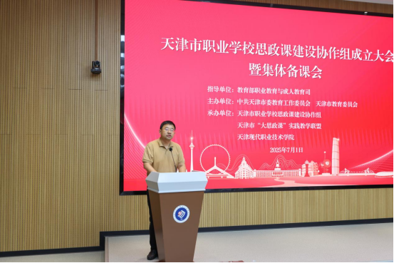 为推进天津全市职业学校协作发展,7月1日,天津市职业学校思政课建设协作组成立大会在天津现代职业技术学院举办。天津市教育两委学生思想教育与管理处处长杨明、天津社会科学院研究员杨义芹、新华网教育与科创事业中心运营总监徐晶、天津现代职业技术学院党委书记康宁等嘉宾出席会议,天津市中高职院校相关领导和思政课部门负责人参加会议。