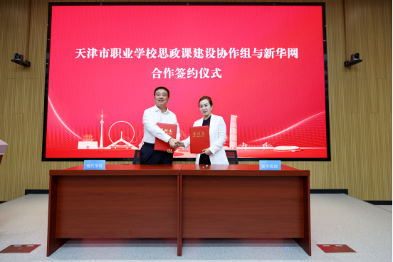 会上,天津市职业学校思政课协作组和新华网签订框架合作协议、与会嘉宾共同为协作组揭牌。