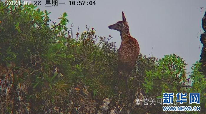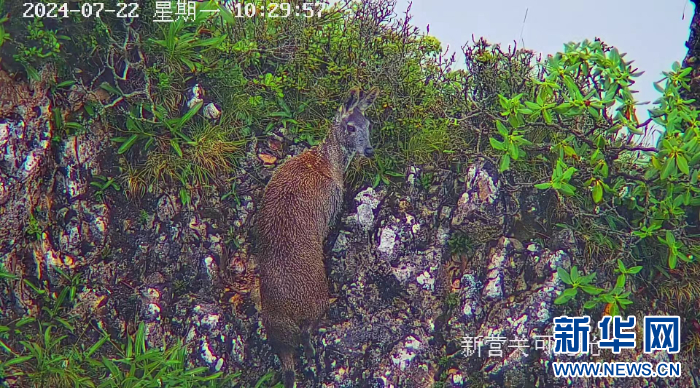 近日,甘肃太子山国家级自然保护区工作人员在利用森林资源综合视频监控系统日常巡监过程中,发现国家一级保护动物马麝在海拔3600米以上的悬崖峭壁灌丛中觅食,这是在该保护区首次发现马麝。