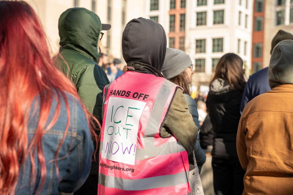 1月11日,在美国首都华盛顿,民众抗议移民与海关执法局暴力执法。新华社发(李源清摄)