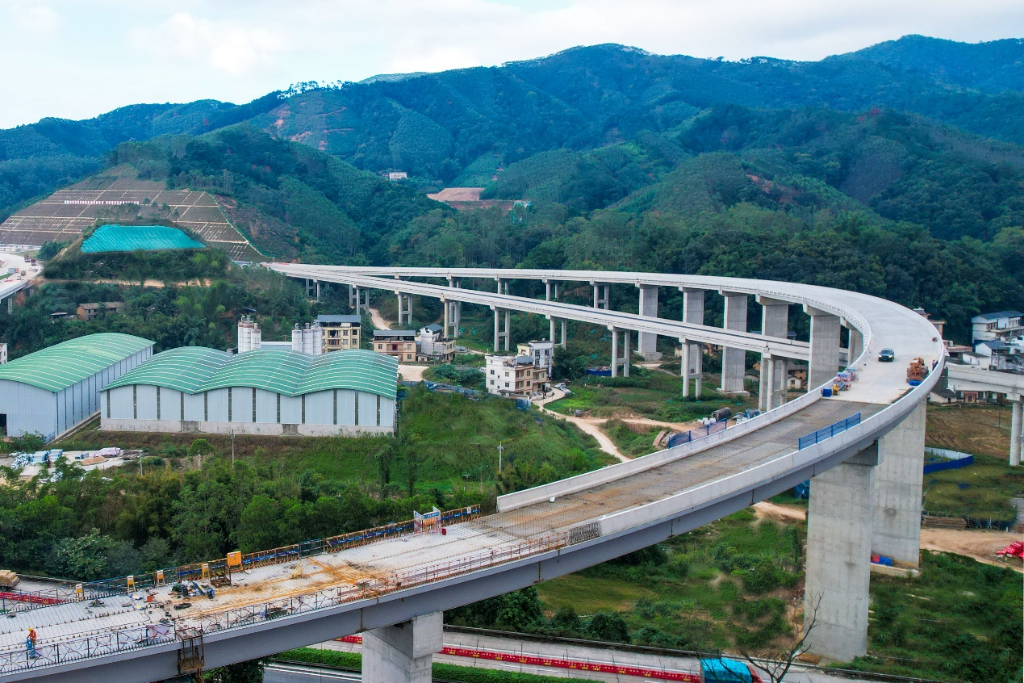 苍容高速8标项目十里枢纽互通钢箱梁架设完成