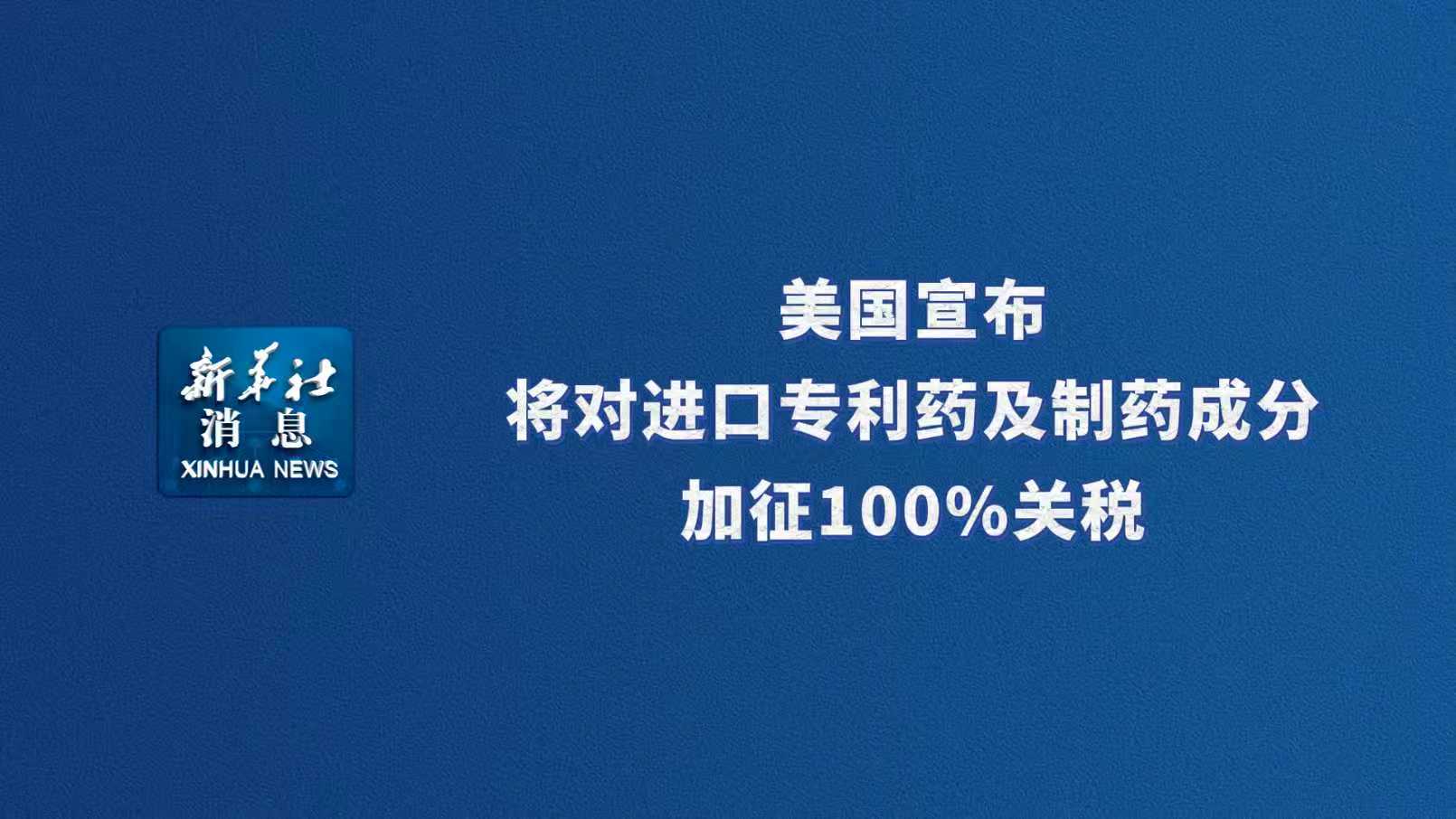 新华社消息丨美国宣布将对进口专利药及制药成分加征100%关税